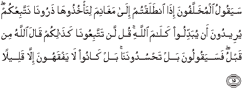 15. Orang-orang Badwi yang tertinggal itu akan berkata apabila kamu