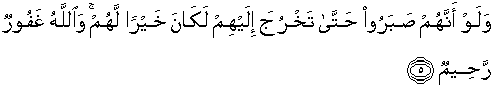 5. Dan kalau sekiranya mereka bersabar sampai kamu keluar menemui mereka sesungguhnya itu lebih baik bagi mereka, dan Allah Maha Pengampun lagi Maha Penyayang.