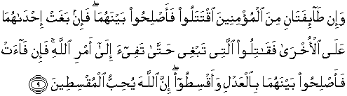 9. Dan kalau ada dua golongan dari mereka yang beriman itu berperang