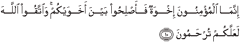 10. Orang-orang beriman itu sesungguhnya bersaudara. Sebab itu damaikanlah (perbaikilah hubungan) antara kedua saudaramu itu dan takutlah terhadap Allah, supaya kamu mendapat rahmat.