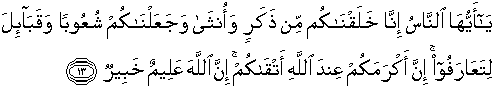 13. Hai manusia, sesungguhnya Kami menciptakan kamu dari seorang