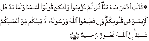 14. Orang-orang Arab Badui itu berkata: "Kami telah beriman."