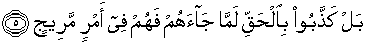 5. Sebenarnya, mereka telah mendustakan kebenaran tatkala kebenaran itu datang kepada mereka, maka mereka berada dalam keadaan kacau balau.