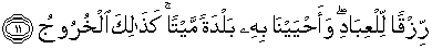 11. untuk menjadi rezki bagi hamba-hamba (Kami), dan Kami hidupkan dengan air itu tanah yang mati (kering). Seperti itulah terjadinya kebangkitan.