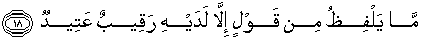 18. Tiada suatu ucapanpun yang diucapkannya melainkan ada di dekatnya malaikat pengawas yang selalu hadir.