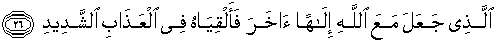 26. yang menyembah sembahan yang lain beserta Allah maka lemparkanlah dia ke dalam siksaan yang sangat ."