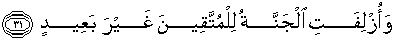 31. Dan didekatkanlah syurga itu kepada orang-orang yang bertakwa pada tempat yang tiada jauh (dari mereka).