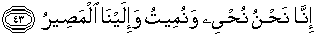 43. Sesungguhnya Kami menghidupkan dan mematikan dan hanya kepada Kami-lah tempat kembali (semua makhluk).