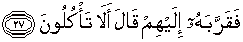 27. Lalu dihidangkannya kepada mereka. Ibrahim lalu berkata: "Silahkan anda makan."