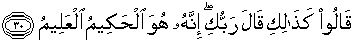 30. Mereka berkata: "Demikianlah Tuhanmu memfirmankan" Sesungguhnya Dialah yang Maha Bijaksana lagi Maha Mengetahui.