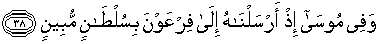 38. Dan juga pada Musa (terdapat tanda-tanda kekuasaan Allah) ketika Kami mengutusnya kepada Fir'aun dengan membawa mukjizat yang nyata.