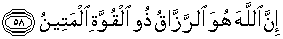 58. Sesungguhnya Allah Dialah Maha Pemberi rezki Yang mempunyai Kekuatan lagi Sangat Kokoh.