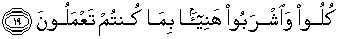 19. (Dikatakan kepada mereka): "Makan dan minumlah dengan enak sebagai balasan dari apa yang telah kamu kerjakan",