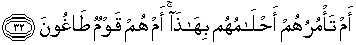 32. Apakah mereka diperintah oleh fikiran-fikiran mereka untuk mengucapkan tuduhan-tuduhan ini ataukah mereka kaum yang melampaui batas?