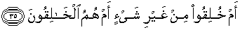 35. Apakah mereka diciptakan tanpa sesuatupun ataukah mereka yang menciptakan (diri mereka sendiri)?