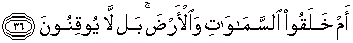 36. Ataukah mereka telah menciptakan langit dan bumi itu?; sebenarnya mereka tidak meyakini (apa yang mereka katakan).