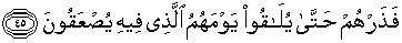 45. Maka biarkanlah mereka hingga mereka menemui hari (yang dijanjikan kepada) mereka yang pada hari itu mereka dibinasakan,