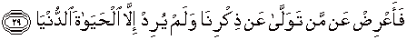 29. Maka berpalinglah (hai Muhammad) dari orang yang berpaling dari peringatan Kami, dan tidak mengingini kecuali kehidupan duniawi.