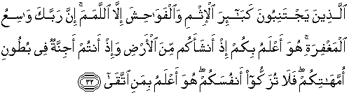32. (Yaitu) orang-orang yang menjauhi dosa-dosa besar dan perbuatan