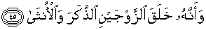 45. dan bahwasanya Dialah yang menciptakan berpasang-pasangan pria dan wanita.