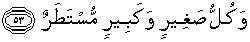 53. Dan segala (urusan) yang kecil maupun yang besar adalah tertulis.