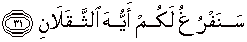 31. Kami akan memperhatikan sepenuhnya kepadamu hai manusia dan jin.