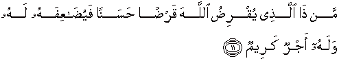 11. Siapakah yang mau meminjamkan kepada Allah pinjaman yang baik, maka Allah akan melipat-gandakan (balasan) pinjaman itu untuknya, dan dia akan memperoleh pahala yang banyak.