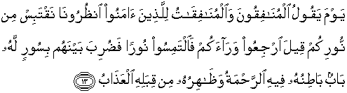 13. Pada hari ketika orang-orang munafik laki-laki dan perempuan