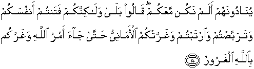 14. Orang-orang munafik itu memanggil mereka (orang-orang mukmin)