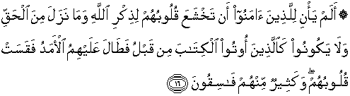 16. Belumkah datang waktunya bagi orang-orang yang beriman, untuk