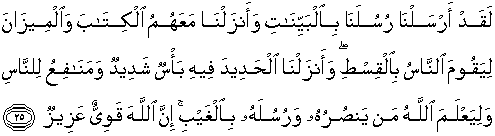 25. Sesungguhnya Kami telah mengutus rasul-rasul Kami dengan