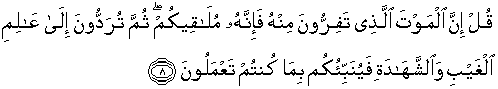 8. Katakanlah: "Sesungguhnya kematian yang kamu lari daripadanya,