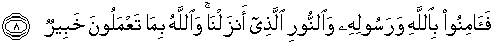 8. Maka berimanlah kamu kepada Allah dan Rasul-Nya dan kepada cahaya (Al-Quran) yang telah Kami turunkan. Dan Allah Maha Mengetahui apa yang kamu kerjakan.