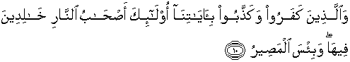 10. Dan orang-orang yang kafir dan mendustakan ayat-ayat Kami, mereka itulah penghuni-penghuni neraka, mereka kekal di dalamnya. Dan itulah seburuk-buruk tempat kembali.