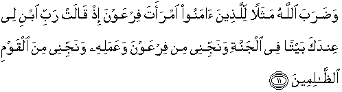 11. Dan Allah membuat isteri Fir'aun perumpamaan bagi orang-orang