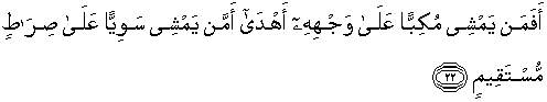 22. Maka apakah orang yang berjalan terjungkal di atas mukanya itu lebih banyak mendapatkan petunjuk ataukah orang yang berjalan tegap di atas jalan yang lurus?