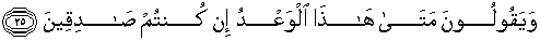 25. Dan mereka berkata: "Kapankah datangnya ancaman itu jika kamu adalah orang-orang yang benar?"