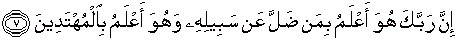 7. Sesungguhnya Tuhanmu, Dia-lah Yang Paling Mengetahui siapa yang sesat dari jalan-Nya; dan Dia-lah Yang Paling Mengetahui orang-orang yang mendapat petunjuk.