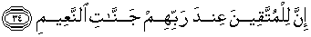 34. Sesungguhnya bagi orang-orang yang bertakwa (disediakan) syurga-syurga yang penuh kenikmatan di sisi Tuhannya.