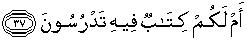 37. Atau adakah kamu mempunyai sebuah kitab (yang diturunkan Allah) yang kamu membacanya?,