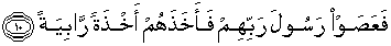 10. Maka (masing-masing) mereka mendurhakai rasul Tuhan mereka, lalu Allah menyiksa mereka dengan siksaan yang sangat keras.