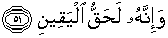 51. Dan sesungguhnya Al Quran itu benar-benar kebenaran yang diyakini.