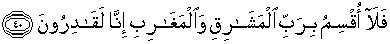 40. Maka aku bersumpah dengan Tuhan Yang memiliki timur dan barat, sesungguhnya Kami benar-benar Maha Kuasa.