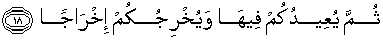 18. kemudian Dia mengembalikan kamu ke dalam tanah dan mengeluarkan kamu (daripadanya pada hari kiamat) dengan sebenar-benarnya.
