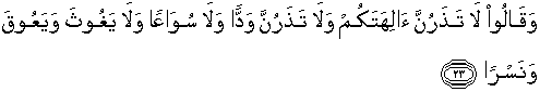 meninggalkan (penyembahan) wadd, dan jangan pula suwwa', yaghuts,