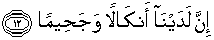 12. Karena sesungguhnya pada sisi Kami ada belenggu-belenggu yang berat dan neraka yang menyala-nyala.