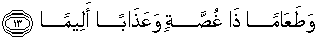 13. Dan makanan yang menyumbat di kerongkongan dan azab yang pedih.