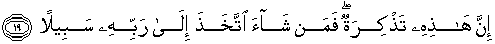 19. Sesungguhnya ini adalah suatu peringatan. Maka barangsiapa yang menghendaki niscaya ia menempuh jalan (yang menyampaikannya) kepada Tuhannya.