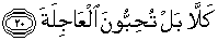 20. Sekali-kali janganlah demikian. Sebenarnya kamu (hai manusia) mencintai kehidupan dunia,