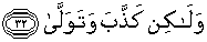 32. tetapi ia mendustakan (Rasul) dam berpaling (dari kebenaran),